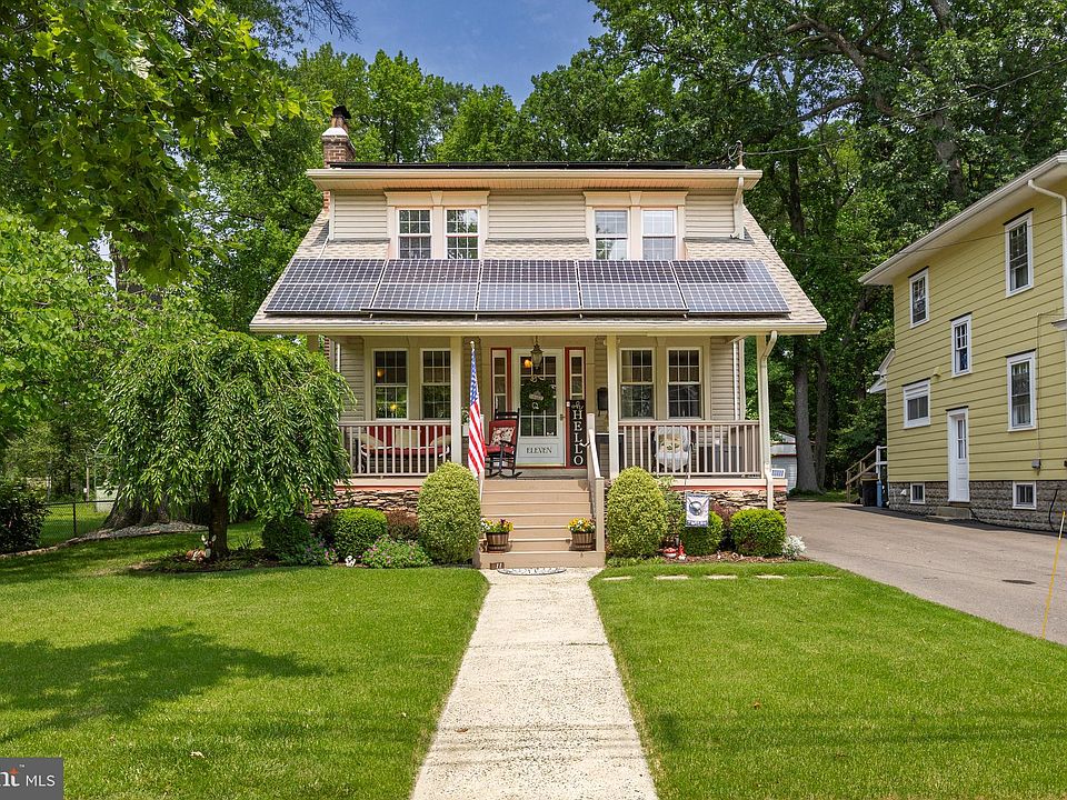 Seller motivated! Step into a world of charm and comfort in this stunning 3-bedroom, 1.5-bathroom home, built in 1929 and meticulously maintained to offer modern conveniences while preserving its classic appeal. The inviting interior features a cozy wood-burning fireplace with energy efficient insert, perfect for creating warm memories on chilly evenings. Enjoy the spacious eat-in kitchen equipped with built-in stainless steel appliances, including a microwave, range, refrigerator, and dishwasher. The home boasts beautiful Laminate plank wood floors, plush carpeting, and elegant wainscoting, enhancing its timeless character. Step outside to discover a beautifully landscaped lot of 0.2 acres, complete with a serene Koi pond and ample space for outdoor activities. A newer roof (9 months), beautifully maintained solar panels with 12 years remaining on the lease Incredibly low lease costs of approx. $124/month with an average electric bill of approximately $6 per month—a tremendous savings! The oversized detached garage and expansive driveway provide plenty of parking and storage options. Relax on the porch or deck (both Trex, with UV Screens for the porch-also included) perfect for entertaining or unwinding after a long day. Located in a vibrant community, just minutes away from local parks, convenient access to schools and public services. Seller also offering Buyer a One Year Home Warranty for added assurance. Experience the perfect blend of classic charm and modern living in this exceptional property-your dream home awaits!
