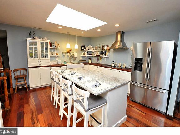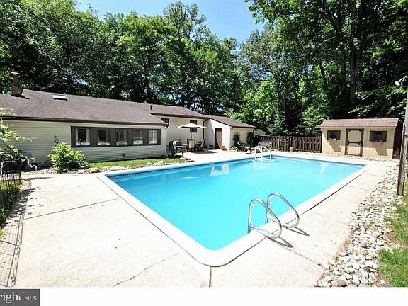Wow! This ranch style home is located on just under a one acre lot with an in-ground pool. You'll be charmed by the fish pond and flower gardens as you approach the front entry with it's leaded glass front door. Once inside you'll love the open floor and updated design. Features include a spacious living room with Brazilian hardwood floors. Large windows and a skylight provide plenty of natural light. The wood floors continue in to the dining room. The kitchen was beautifully renovated in 2015 and include Brazilian hardwood floors, Stainless steel Whirlpool appliances that include a refrigerator, double oven, an induction cook top and stainless steel range hood. There is also a large center island with granite counter tops, pendant lighting and a skylight. There is 2 years left on the appliance warranty ( April 2019) and the cabinetry came with a 25 year warranty. Step down to the Spacious family room with a vaulted ceiling, ceramic tile floor, ceiling fan and a wood burning stove with a New stove pipe. A French door opens to a sun porch with a sliding glass door that opens to the large paver patio, fire pit, in-ground pool and back yard. Back inside, there is an Office, laundry room and powder room. There are three bedrooms all with wood floors and ceiling fans. The Jacuzzi bath tub in the Main bathroom was installed in 2010, but the rest of the bathroom is newly renovated. Other features include updated Roof, Septic & Heat, recessed lighting, custom built-ins, shed and irrigation system in front yard. The sellers are providing a one year 2-10 Home Warranty for peace of mind.