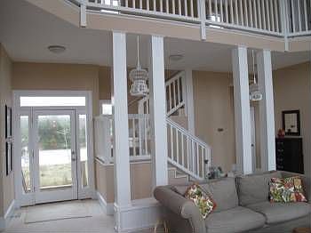 Dramatic, 20 ft. wall of glass showcases stunning views of Sound, Marsh and ICWW. 119' of waterfront on a navigable canal, dock and pier in place. 10' ceilings on first floor, 21' vaulted ceiling in Great Room, 6/10's acre wooded lot with plenty of privacy. Deeded community beach accesses. Selling fully furnished and ready for immediate enjoyment. Seller is Licensed NC R/E Broker