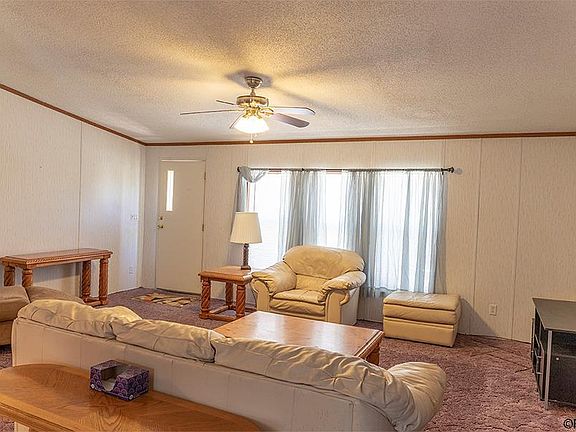 West facing home on just over 1/2 acre lot (fenced on 3 sides in back) has views of beautiful mesa rock formations & sunsets. Four bedrooms and two full bathrooms combine with an open kitchen/dining room floor plan to give a more spacious feel than 1512 sq. ft. might indicate. Property is on a quiet street & has a rural feel even though there are neighbors with a well maintained property next door. Seller is offering this 1999 manufactured home either furnished or not depending on buyer's preference. Quality living room, dining room, and master bedroom suite furniture is included in asking price, or seller will haul it away if buyers have their own furnishings. Come experience country living at a reasonable, ready to sell price.