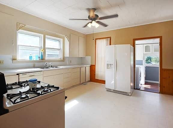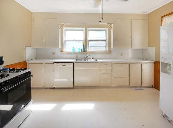 Spacious 2 Bedroom Home with Large Fenced Yard! This home offers an Eat in Kitchen, Living Room/ Dining Room Combo, Main Floor Full Bathroom, Main Floor Laundry, Vinyl Replacement Windows, Enclosed Front Porch (not pictured) and 1 Room in the Basement Partially Finished.