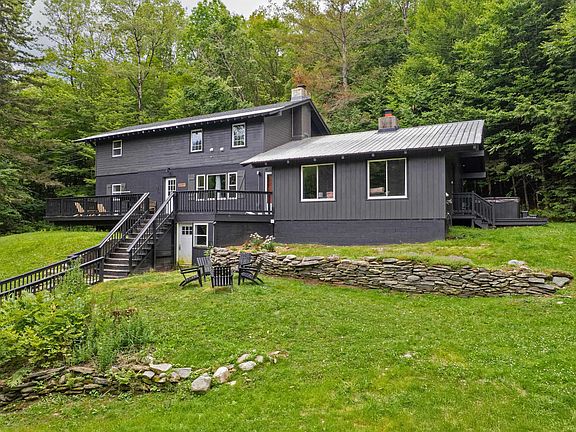Discover this turnkey mountain retreat boasting 7 bedrooms and 5 baths, located just minutes from Mount Snow. Whether you're looking for an investment with proven rental history or a spacious getaway, this home delivers. Highlights include dual living areas and fireplaces, plus modern updates throughout—including updated flooring, baths, and kitchen—with plenty of room for large groups. Relax in privacy on 1.94 acres with a wooded buffer from other properties, stargazing from your private hot tub, or take a short stroll to the MOOver bus for an stress-free ride to the resort or into town. Enjoy summer and fall on the deck or around the outdoor fire pit, and during winter nights, get cozy in front of one of two fireplaces. This property provides that classic Vermont mountain feel with modern finishes. Being sold furnished—this is a must-see! *please call in advance for showings, this property is being rented.
