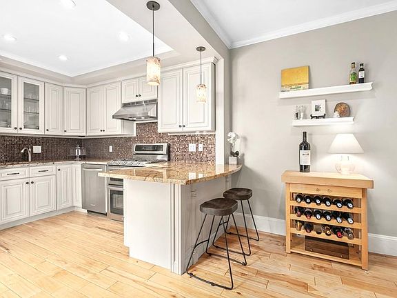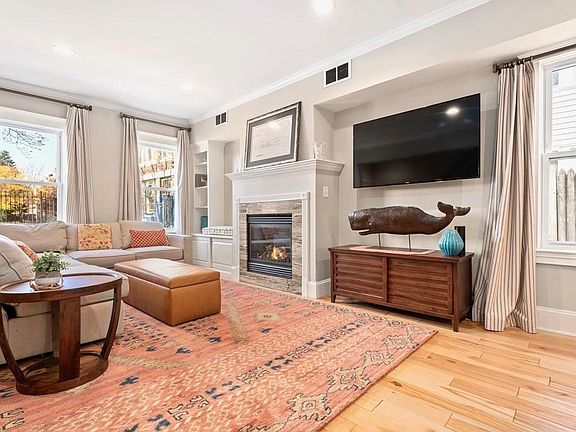 Spectacular 3 bed/2.5 bath Single Family with deck & patio! Modern renovation features idyllic floorplan, high ceilings, and great natural light. Open and inviting living room, with framed gas fireplace, is the perfect space to relax or entertain. Oversized granite kitchen provides custom cabinetry, gas cooking, and built-in breakfast bar. Dedicated formal dining with wine storage and wet bar. Kingsize master suite offers designer bath with double vanity and steam shower! Large guest bedrooms are ideal for the growing family. Incredible finished basement with game area, hand-crafted bar seating, and extra storage. Enjoy southwest exposure on your elevated deck and enclosed brick patio! A fleeting opportunity just steps to all-things Charlestown.