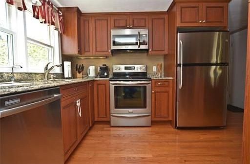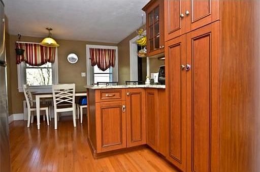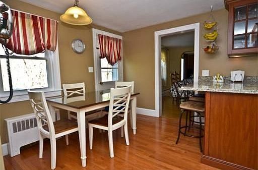 Lovely center entrance Colonial near conservation land and trails. Updated kitchen (2009) granite counter tops, stainless steel appliances, and breakfast bar plus an eating area. Half bath remodeled in 2013. Formal dining room leads to front-to-back living room with fireplace and sliders out to spacious 11' x 29' deck. Flexible 2nd floor with office/nursery off master bedroom with good closet space and nice light. One car garage with storage, along with storage shed in back yard.