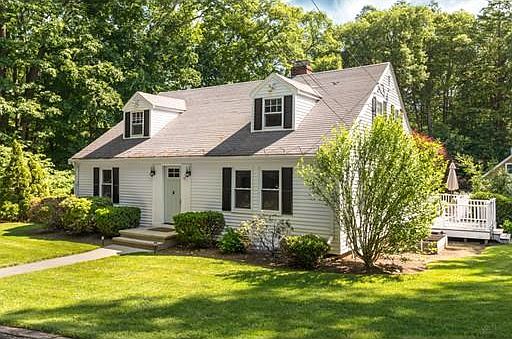 This pleasing seven room Cape is a study in clean design. On a private way, just a short hop from Dudley Pond, the flow of well-proportioned rooms lends an open feeling to the up-dated home. The bright Kitchen has plenty of storage, white cabinets, stainless steel appliances. Hardwood floors add warmth to the adjacent Dining Room and generous Living Room with Fireplace. The home provides a Master Bed Room, second Bed Room, plus a multi-use room for Office or Nursery. Glass Sliders lead out to a large wrap-around Deck, for views of the lush lawn, garden and decorative Koi Pond. Recent up-grades: renovated Bathroom with radiant heat, fresh paint throughout, BRs and Office carpets, 200 amp electrical service, Radon Mitigation System, Water Softener System, recessed lighting. There is Central AC and full Basement with Garage access. Architectural plans are on-hand for renovation of Walk-up dormered Attic. Near to hiking trail, town beach, boat launch, Happy Hollow Elementary & Wayland HS.