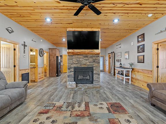Welcome to your serene oasis! This captivating 3-bedroom, 2-bathroom country home is nestled amidst 3 acres of lush greenery, providing the perfect blend of natural beauty and modern comfort. As you step inside, you'll be greeted by the breathtaking floor-to-ceiling fireplace. This stunning focal point adds warmth and character to the open and split floor plan. The kitchen features stainless steel appliances that seamlessly merge style and functionality. A large island with a breakfast bar offers ample space for casual dining and an open dining area, ideal for gatherings and creating lasting memories with friends and family. The master bedroom is a haven of tranquility, and the ensuite bathroom features large closet space. Step outside to enjoy the best of outdoor living. A covered front porch invites you to savor your morning coffee while taking in the sights and sounds of nature. At the rear of the home, a generously sized deck provides a private space for outdoor entertainment and relaxation, surrounded by the beauty of your 3-acre retreat. Don't let this unique gem slip through your fingers!