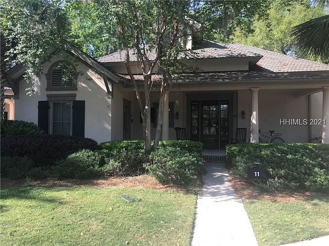 RENTAL MACHINE - furnished 2 bd, 2 bth Hampton Hall golf cottage, large great room, beamed 12' ceilings, columns, crown moldings, wood floors throughout, gas fireplace, built-ins, open to kitchen and dining area, covered screened in porch, overlooking spectacular wooded preserve view, lock out bedroom with kitchenette and separate entrance, great private home, 2nd home, or rental. Walking distance to Hampton Hall's world class amenities: golf, tennis, 2 restaurants, 2 pools, fitness center, bocce, basketball, pickle ball. Close to Old Town Bluffton, Hilton Head beaches, and Savannah. Won't last long.