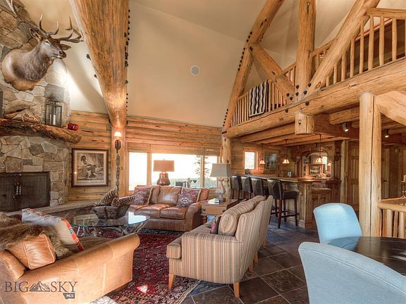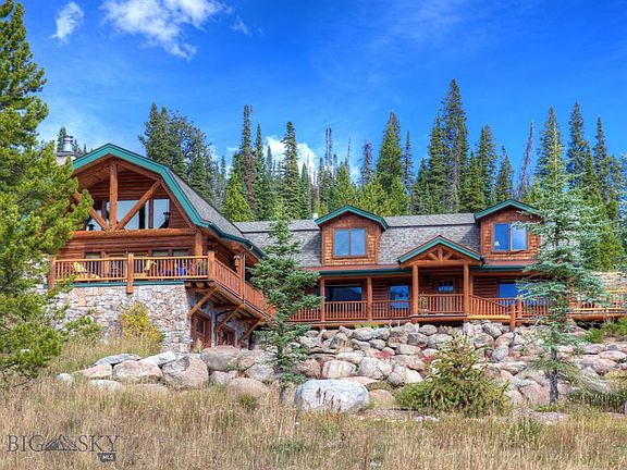 Classic custom Montana log home decorated in the Ralph Lauren style makes this the perfect luxury retreat. Offered furnished less personal exclusions (see associated docs). Located on a private cul-de-sac on two lots with dead on views of Lone Peak and Big Sky Resort with a sunny southern exposure combined with forest privacy on back of the home. Minutes from the biggest skiing in America. 2-car garage with lots of storage, a mud room with ski lockers and boot warmers plus extra large storage and utility room. Hand carved, custom "western bar", hot tub and gourmet kitchen with new stainless appliances. A new addition was added in 2004 and the original section was completely remodeled. Sellers added a new 50-year rated roof and Bylin ice melt system in 2019. The cozy guest cabin is ideal for entertaining larger groups of family and fiends and has an excellent rental history (see associated docs) when not being used for the family. This home really HAS IT ALL!