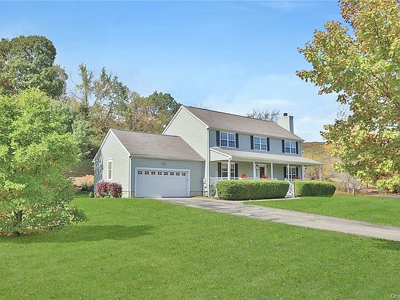 Leaf peep in your own backyard!! The dream country retreat, amazing serenity and distant mountaintop views abutting 350 acres of forever green space adjacent to the Appalachian Trail awaits you only 60 miles from NYC. This 4 bedroom 2 1/2 bath colonial on the most private cul de sac in idyllic Deerfield Ponds is renovated to perfection, open plan and light-filled, with a rocking chair front porch, plenty of room to work from home or for extended family, backyard patio surrounded by nature, huge (over 1200sf) unfinished basement for extra storage, large garage and driveway parking galore. Over $30k of renovations/improvements in addition to custom built upgrades. Amenities include pool, playground, fitness center, clubhouse, tennis and basketball courts. Located minutes from Lakeside park, the historic and charming village of Pawling village and train. Taxes with STAR approximately $8964.