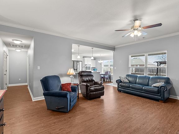 BEAUTIFUL CUSTOM BUILT HOME! 3 bedrooms, 2 baths and office. Split floorplan. Great room open to kitchen and dining area. Crown molding in foyer, great room and kitchen. Kitchen with it all, shaker cabinets, pantry, quartz countertops, stainless appliances, KitchenAid, stove top and wall oven, Whirlpool dishwasher and slimline over the range vented microwave. New LVP flooring throughout, DVD closet, guest bathroom has a large closet and large walk in shower. All bathrooms have cultured marble counter tops. Large garden tub and separate shower in master bath. Large outside storage building with electric and lighting. Brick walkway to storage building. Fully fenced backyard with two large raised bed gardens containing super soil. Spray foam insulation and extra insulation blown into attic. Floor attic above garage with aluminum pull down ladder. Call for your private showing today.