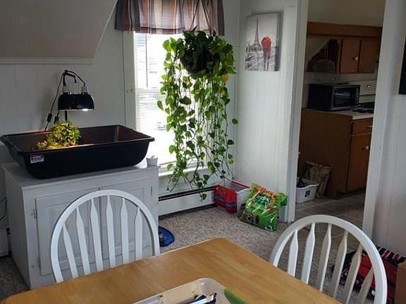 Two bedroom second floor apartment. Master bedroom with walk-in closet and standard closet. Stackable laundry in unit left by previous tenant. Tenant responsible for any future repairs or replacement