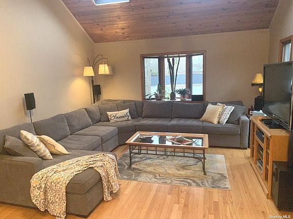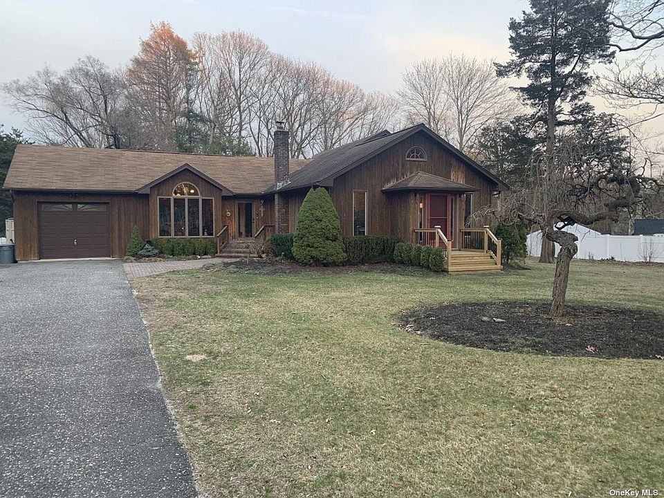 Beautiful Expanded Ranch set back on 1.66 Acre lot. This home features Spacious Kitchen w/ abundance of Counter Space, Gas Cooking, Countertop Seating & Walk-in Pantry. Dining Area with Wall of Windows Facing Tranquil Private Grounds & Sliding Doors to Deck. Den w/ Vaulted Ceiling & Recessed Lighting. Living Room w/ Vaulted Ceiling and Sliding Doors to Deck. Master Bedroom, 2 Additional Bedrooms, Gleaming Wood Flooring Throughout. Two Full Bathrooms. 1 Car Garage w/ Exterior Door to Side Yard. Anderson Windows. Newer CAC. Newer Burner and Oil Tank.