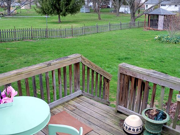 Wonderful opportunity! The front living room has hardwoods under the carpet and a gas fireplace. Off of the this room is a bonus room which would be a perfect office space. The large dining room has hardwoods under carpets and opens to the eat in kitchen. Off of the kitchen, with all appliances staying, is a deck looking out over the extra deep yard with shed. The yard is fully fenced. The first floor also has a spacious bedroom, full bath and laundry, perfect if looking for a home avoiding stairs. The 2nd floor has 2 more bedrooms and a full bath. Great attic storage too. Full taxes shown.