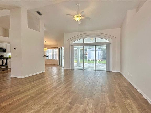 Under contract-accepting backup offers. One or more photo(s) has been virtually staged. Welcome to this stunning Howell-built home, perfectly situated in the desirable Pine Lakes subdivison. This 3-bedroom, 2-bath offers a thoughtfully designed split floor plan with plenty of style and comfort. Step inside through the etched glass front door and you’ll find a bright formal dining room and a spacious great room with elegant tray ceilings. The home features newer vinyl plank flooring throughout and a newer roof (2021), giving you peace of mind and modern appeal. The kitchen is equipped with cabinets with pullout drawers, stainless steel appliances and a cozy breakfast nook, and it overlooks the living areas, making it ideal for both daily living and entertaining. Triple sliding glass doors lead you out to the expansive covered and screened lanai, perfect for relaxing or hosting gatherings. The large primary suite is a true retreat, featuring tray ceilings, a walk-in closet with built-ins, and a bath complete with seperate dual vanities with lighting underneath, a garden tub, and a separate walk-in shower. Additional features include a laundry room with washer and dryer included, a circle driveway with a garage door screen, a sprinkler system on well, and a shed in the backyard. The nicely landscaped yard completes the appeal of this charming property. This home also features lightning rod system. Easy to show!