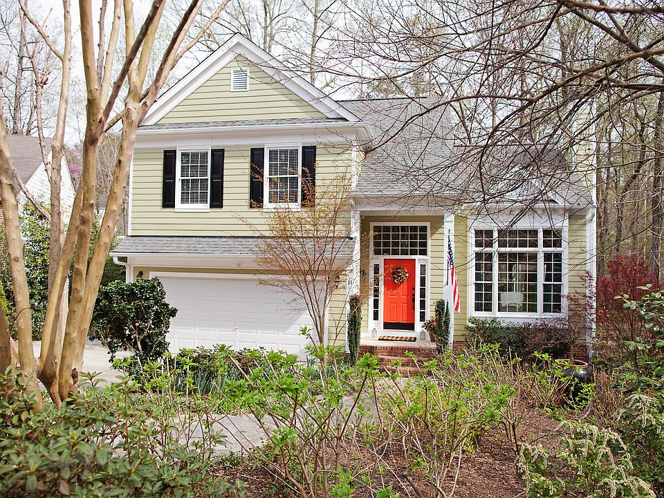 A tastefully updated home in the Hope Valley Farms neighborhood, convenient to RTP, Duke, and UNC. Walking distance to the Third Fork trail, neighborhood YMCA, with swimming pool, tennis courts, and playground. Stunning kitchen includes Peruvian mahogany cabinets, granite counter tops, gas cook top, and stainless appliances. Professionally landscaped yard features a large patio, outdoor fireplace, pond-less stream, ample landscape lighting and in-ground irrigation. Backyard is perfect for entertaining! Private cul-de-sac lot with great neighbors. New HVAC and water heater, recent roof and exterior paint. Beautiful maple floors throughout the main level, carpet on the second floor, with tile floors in all of the bathrooms. Large walk in crawl space under the house, great for storage.