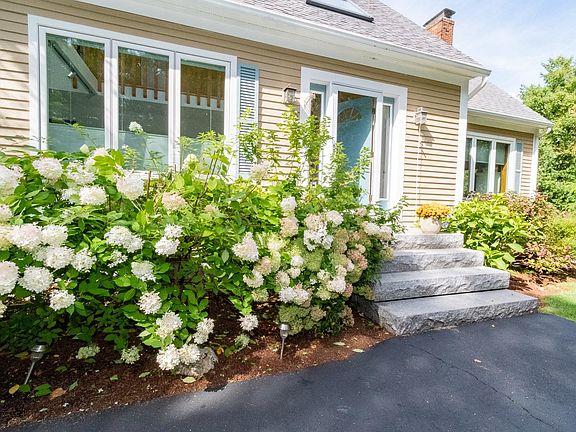 Classic New England charm meets modern luxury in this expanded contemporary Cape well positioned on a 2.5 acre privately set Bedford lot with in-ground pool, blooming perennial beds and mature gardens. The soaring vaulted entryway welcomes you with its clean lines, bright natural light and warm interior design - a prelude to the sophisticated, free-flowing interior. A circular flow open floor plan seamlessly connects the gourmet kitchen, elegant dining area, and inviting family room with gas fireplace - creating a perfect environment for entertaining and daily living. The heart of the home, a chef's kitchen, boasts premium stainless steel appliances and a center butcher block island - ideal for gatherings. A lofted upper level hallway overlooks the sun-drenched lower living room and offers a serene primary suite with 2 walk-in closets, bright ensuite office and full bath with dual sink vanity and quartz countertops. Two additional bedrooms and well-appointed bathroom with door adjoining to large end bedroom provide comfort for family and guests. Lower level bonus office and family entertainment space exists in basement. Three season sunroom off kitchen leads to a private backyard oasis. Enjoy the warmer months on the patio overlooking the pristine, in-ground pool, a centerpiece of this lovely landscaped yard designed for relaxation and entertaining. Easy access to shopping, restaurants, and commuter highways. OFFER DEADLINE: ALL OFFERS DUES BY 12PM MONDAY, SEPTEMBER 8TH.
