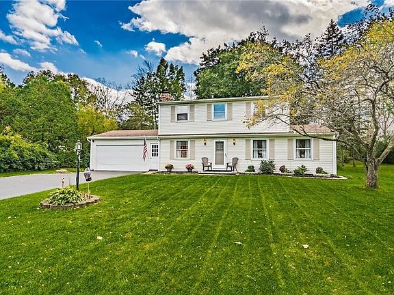 Spacious 3 bedroom colonial with Fellows Rd park directly behind. Gorgeous brand new white kitchen, stainless steel LG appliances, quarts counters. All new flooring and rugs in the downstairs. Hardwood flooring upstairs and (under new rug downstairs). Stone wood burning fireplace in family room. Large 3 bedrooms, master with attached full bath. HUGE 3 season room, with tons of windows. New hot water tank, new 2 1/2 wide driveway. Partially finished basement with extra craft/sewing room. FAIRPORT electric. Tons of living space downstairs. This home has great flow, perfect for entertaining. All appliances stay. Curtains in boys bedroom do not stay or The "Ring" door bell.