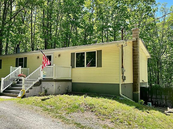 RANCH HOME ON 3 WOODED ACRES- Home features large living room and eat in kitchen w/ Hardwood floors, 3-4 bedrooms, 3 baths and a spacious mostly finished basement includes a family room with wood and pellet stoves. There is an above ground pool in the back yard plus a 1 car garage and large shed. Included are 2 additional level & wooded lots. Home is being sold ''as is'' affordably priced!, Beds Description: 2+Bed1st, Beds Description: 1BedLL, Baths: 1 Bath Level L, Baths: 2 Bath Lev 1