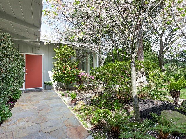 High Vaulted Ceilings Walls of Glass Beautiful Appointments Throughout Picturesque, Private, Level Yards Neighborhood Pool & Tennis Court Nearby Stylish and Sophisticated, this stunning contemporary home is in desirable Hidden Valley, close to vibrant downtown Lafayette, recreation areas, and convenient freeway access. Beautifully updated over the years, the home is designed with walls of glass, French doors and high vaulted ceilings to create the perfect environment for indoor/ outdoor living. The interior spaces flow naturally out to four different flagstone patios, lovely gardens, and lawns. With a short distance to neighborhood swimming pool and tennis court and access to top rated Lafayette schools, this property is unique and distinctive. Dramatic Living Room: High ceiling, wall of glass with French door. Floor to ceiling fireplace , built-in shelving, grand sized chandelier Formal Dining Room: Wall of glass with French door access to a second flagstone patio Sensational Cook's Kitchen: State of the art stainless steel appliances, cherry cabinetry, exquisite granite slab counters, breakfast bar, serving/bar area with beverage and wine refrigerators Adjoining Family Room: Walls of glass open to patio, lawn, fenced yard. Gas log fireplace with cherry paneling, custom honed granite hearth Luxurious Master Suite + two Bedrooms, updated Baths. Top Rated Lafayette Schools – Happy Valley Elementary, Stanley Intermediate, Acalanes High School (Please confirm availability with school districts)