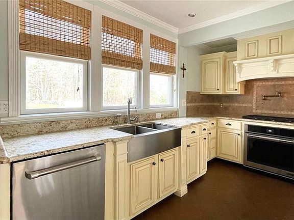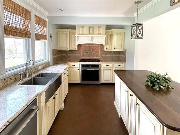Beautiful expansive three bedroom, two and a half bath designer Cape Cod home. Eat in kitchen and spacious dining area outfitted with top-of-the-line appliances(JennAir/Samsung/Kohler) and beautiful custom cabinets. Formal living room with gas fireplace and mantle. Large Family room with arched windows and vaulted ceilings, French doors overlooking patio and picturesque backyard, surrounded by a lovely canopy of woods and stone walls. First floor master suite with walk-in closet, bathroom complete with Jacuzzi tub and tiled walk-in shower. First floor half bath, mud room and breezeway that leads out to massive 3 bay garage complete with lofted area above. Second floor has 2 large bedrooms and full bath. Crown moldings throughout, ductless mini splits for heat/ac on 5 zones, whole home Honeywell Generator, irrigation, alarm system, decorative exterior lighting. New Septic system (2020) and new well (2021). Peaceful, private living right off South Rd but just minutes away from North Kingstown/Rout 4/highway/shopping and beaches.