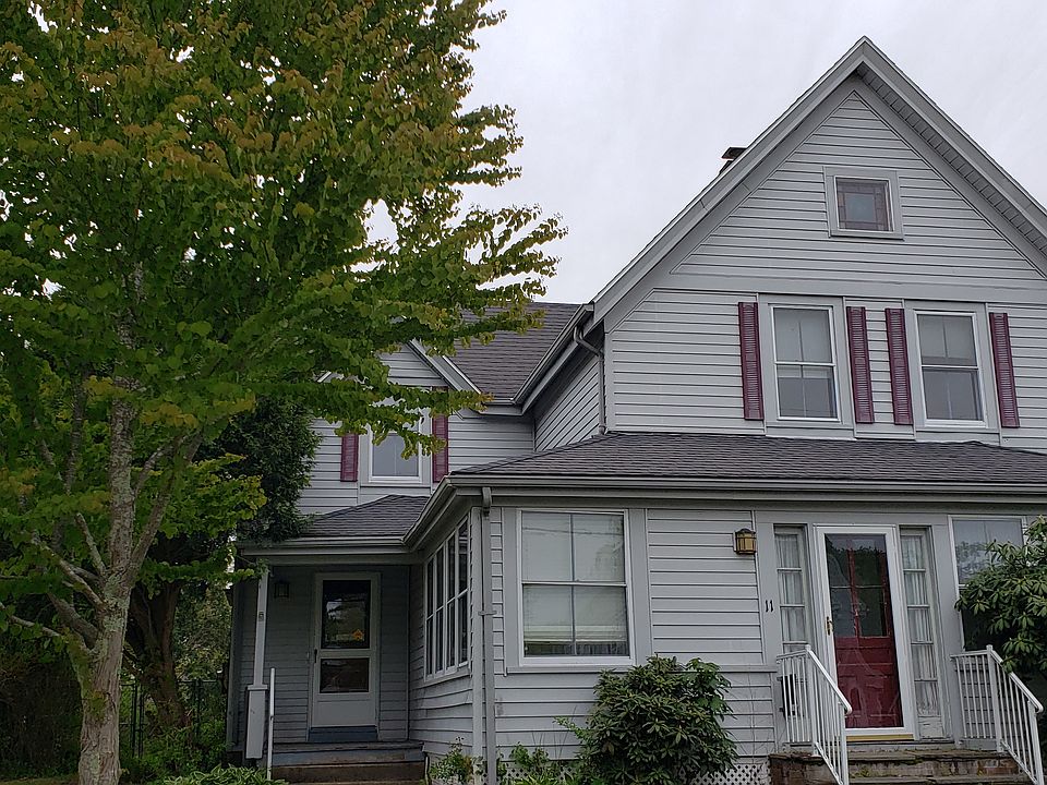 This is a charming home with some updated electrical, roof, furnace, galley kitchen, huge over sized eat in kitchen, formal dining room, family rm, original gleaming hardwoods, 2 car garage, enclosed front porch, walk to school, historic downtown, Westerly, train. There are two out buildings, one is a garage that needs extensive rehab, currently used as a game room Main floor oil heat, elect on 2nd floor. Hardwood floors, eat in kitchen, with sky light, fully appliances, enclosed front porch, on and off street parking. Extensively remodeled. in 1987 and recently 2019. Great rental property or owner occupy. Two baths, 4+ bedrooms with room to grow. Recently painted, and a little more sweat equity will bring this back to its original luster and charm. Recently upgraded nob and tube wiring and electrical box. This is a great big family home!!! **Bank approved $215,000, two appraisals completed.