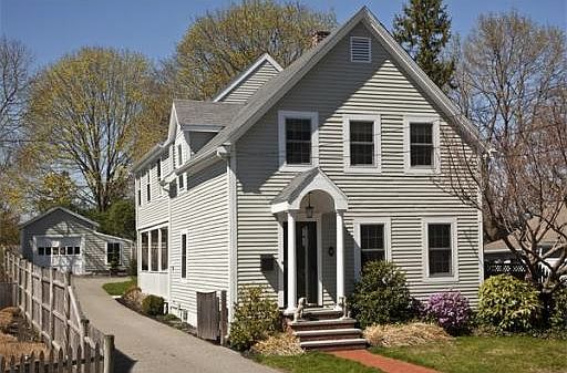 A charming New England farmhouse on the outside; light, bright, open, charming and air conditioned on the inside. First floor features hard wood floors, crown moldings and high ceilings. The kitchen has granite counters, stainless appliances, a pantry, mudroom, and is open to the family room with gas fireplace and sliders to the stone patio. Spacious second floor offers a family bath, 4 bedrooms including a master suite with bath, and a study alcove. Lower level has a carpeted playroom (not included in the sq footage). Professionally landscaped, fenced yard and detached 1 car garage with extra storage space ....all on a charming side street in heart of Hingham Center close to train, commuter boat, playgrounds and town.