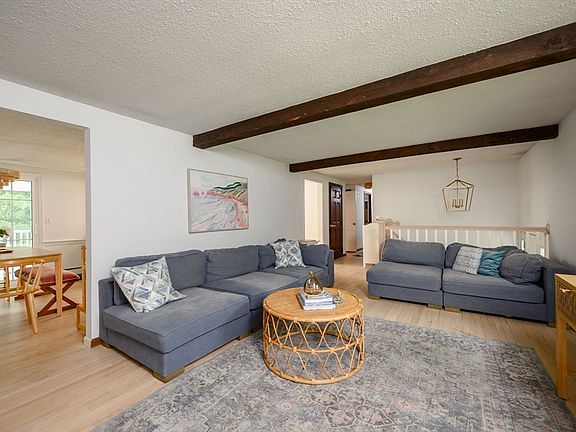 Stylish, spacious, and just 2 miles from the beach! This 4-bed, 2-bath home sits at the gateway to a sought-after, established, family neighborhood. Inside, the sunny kitchen with breakfast bar flows into the dining room, while the living room features exposed beams and a cozy fireplace. Upstairs you'll find 3 bedrooms, including a private primary suite with ensuite bathroom. Downstairs you'll be impressed by the extra large bonus space with second fireplace, 4th bedroom or office, home gym, and laundry/mudroom with storage off the garage. Step out onto your new, oversized screened porch and expansive back deck overlooking nearly an acre of peaceful, private yard. With a 2-year-old septic and room for everyone—this home is ready for summer living!