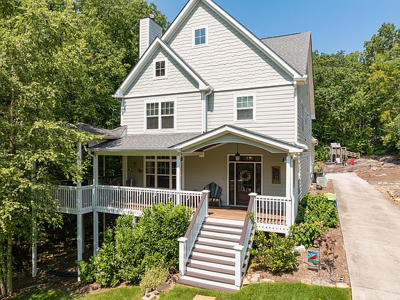 4 bedroom, 3.5 bath home in the heart of Lookout Mountain, TN close to schools, the Commons sports fields, tennis courts and playground, the quaint business district with the cafe, market, coffee house and spa, and it is only 10-15 minutes to downtown Chattanooga. This turnkey home boasts wonderful curb appeal with its Hardie exterior, wrap around covered porch, and delightful creek with natural stone which meanders down one side. The main level has a great flow with spacious rooms, high ceilings, crown moldings, hardwood and tile floors, decorative lighting and a versatile layout. Your tour begins with the great room that has a gas fireplace, double door storage closet and two arched doorways to the formal dining room. The dining room is open to the kitchen and breakfast area and is large enough to be used as a keeping room if preferred. It has a coffered ceiling and French doors to the side covered porch which has a woodburning fireplace providing a nice flow for indoor to outdoor entertaining. The kitchen has a large center island with pendant lighting, granite countertops, subway tile backsplash, stainless appliances including a gas cooktop and double wall ovens, soft close cabinetry and a walk-in pantry. The sunny breakfast area has built-in bench seating and is large enough to accommodate a variety of table shapes and sizes. The mudroom is at the back of this level and has a built-in desk, bench and cabinetry and has access to the powder room and the garage. Head upstairs where you will find the primary bedroom which has a nice walk-in closet and private bath with separate vanities, a soaking tub, separate shower with dual shower heads and a water closet. There are two additional bedrooms that share the use of the hall bath, an office area, and a 4th bedroom suite that has 2 built-in beds, a private bath and is large enough to double as a bonus room if desired. There is room for overflow storage in the crawl space which has a full-sized man door, and there