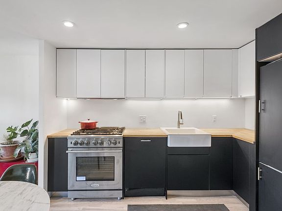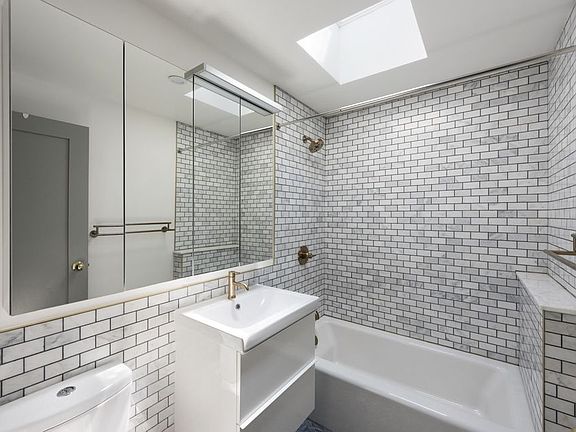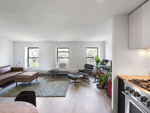 Top floor of historic townhome Built in 1905, this re-envisioned historic townhome was converted into four premium full floor residences in 2017. Designed by an acclaimed architect, each apartment provides modern luxury within the quintessential brownstone Brooklyn setting. Best of all it is a half-block off beautiful Ft. Greene Park, providing residents with its tennis courts, jogging path, playgrounds, farmers market and open green spaces. Residence features: - White oak flooring - Decorative crown moldings - Exposed brick - In unit washer and dryer - Heat included - Video intercom - Wifi enabled air conditioning unit - Recessed lighting Kitchen features: - Butcher block countertops - Farmhouse sink - European cabinetry - White Marble backsplash - Five burner range - Elegant matte black finish appliances with bronze details - Dishwasher Bathroom features: - Custom grey tile - Bronze fixtures - skylight - European lighting Location: The home is situated one block off Myrtle and Dekalb Avenues, both teeming with nightlife and dining options. BAM Cultural District is but a short walk. There you'll find an ever-blossoming array of theaters, galleries, restaurants, beer gardens and the one and only sports/entertainment venue, Barclay Center. Neighboring Atlantic Terminal provides a myriad of subway lines as well as the LIRR.
