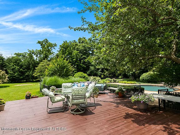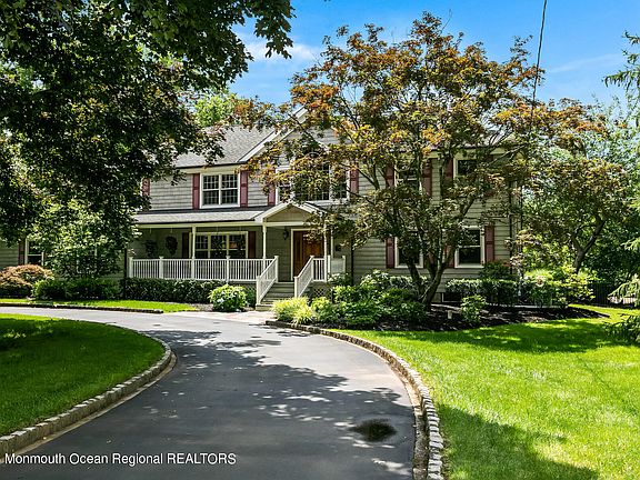 Pride of ownership is evident in this gorgeous 4 bed, 3.5 bath meticulously maintained custom Colonial situated on a beautiful cul-de-sac on over 2 acres. Impressive circular Belgium Block driveway & welcoming front porch will grab your attention as soon as you drive up. Features include wood floors, Palladium Windows, open floor plan, appealing interior design, decorative moldings, French Doors & bow windows. Sun filled 2 story-foyer greets you home. Beautiful designer kitchen offers rich wood cabinetry, large center island, high-end stainless-steel appliances & opens to spectacular Great Room showcasing beamed ceiling & gorgeous gas brick fireplace. Elegant dining room has attractive pendant lighting & graceful living room offers large windows. Fabulous primary bedroom features tray ceiling & large walk-in closet. Spa-like primary bath has soaking tub & shower room with dry & steam sauna. All bedrooms are generous in size & 1st floor guest bedroom is handicapped accessible. Resort-like private backyard is truly where you will love to entertain with expansive deck complete with built-in BBQ with rotisserie, warming drawer, bartenders station, concrete ice bin & sink. Sparkling heated Gunite pool & spa will be center of summertime fun all surrounded by mature trees & landscaping. Home also offers large 2 car garage, partially finished basement, whole house generator, 2nd fl bonus room can be used as a bedroom/playroom or office & separate woodshop shed with heating & air conditioning. Living in Colts Neck offers close proximity to beautiful beaches, parks, horse farms & NYC transportation.