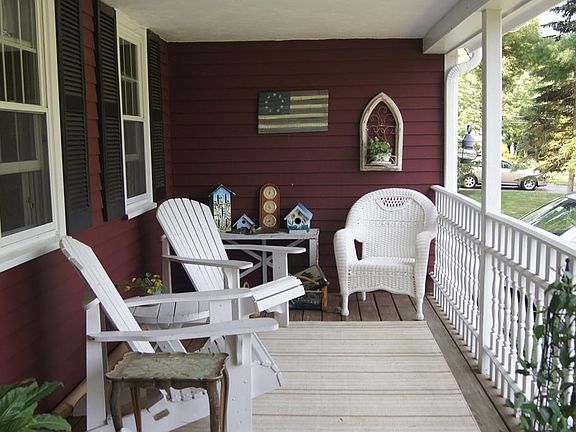 Beautifully maintained sun filled 4 bedroom 3 1/2 bath Colonial sits in a quiet cul-de-sac neighborhood close to center of town and schools. Start your day on your front porch overlooking the beautifully landscaped lawn and gardens. First floor has open floor plan concept. Kitchen is equipped with Cherry cabinets and granite counters with sliders to deck overlooking the back yard. Opens up to a study/sitting room with beautiful bay window. Living room has a fireplace and wainscoting. Upstairs 3 good sized bedrooms and a home office/playroom. Master suite is huge! Big enough for your own t.v. entertainment area or office. Chimney is exposed in this room and is equipped with flue work to add a fireplace to your own private retreat. Large walk in closet and double sink vanity in master bath. Mudroom has sliders to the deck and 2 good size closets. Laundry room with a sink on first floor. All 3 full baths have been recently painted. Hardwood floors on first floor refinished.