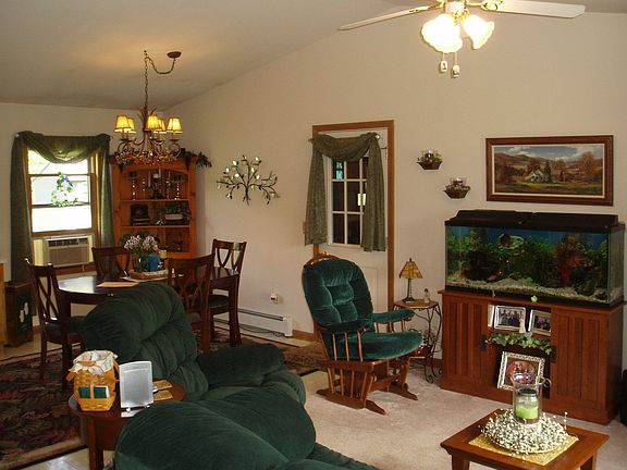 Immaculate split level; move-in condition! Flexible floor plan with three bedrooms on 2nd level or "teen" rooms on lower level. Great room with vaulted ceiling and large country kitchen. Great nieghborhood on cul-de-sac with shared leach field(est.$20/month association fee) Natural gas hot water baseboard heat. Convenient location with a country feel. Over .7 Acre land with det. shed. Must see!