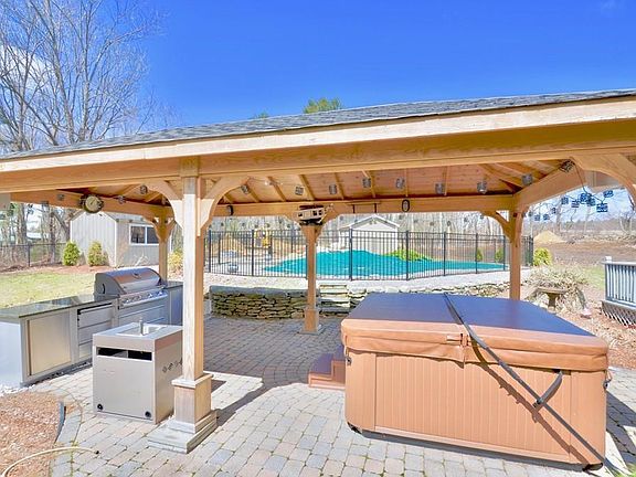 This exquisite home is stunning from the moment you pull into the driveway. 2 attached heated & 1 detached garage, an in-ground heated gunite pool along w/hot tub, new full basketball court, new gazebo & ext kitchen area make this perfect for entertaining and fun! Adding to the exterior is a huge open flat yard, oversized deck, automatic switch 20 kW generator & more! The interior is absolutely stunning. As you enter through your open foyer, the warm pellet stove in the living room w/vaulted ceilings welcomes you! 2 1st floor beds w/full bath give a nice versatility to the home. The renovated kitchen HAS to be seen w/its superb granite & tons of cabinet space! Family room w/gas fireplace, vaulted open beam ceilings, & radiant floors leads to your outdoor paradise! Second floor has a fireplaced master suite like none other! Bath has 2 vanities, whirlpool tub and HUGE walk in closet! There is a guest suite w/full bath too! Lower level finished with game, theater, pool table and bar area