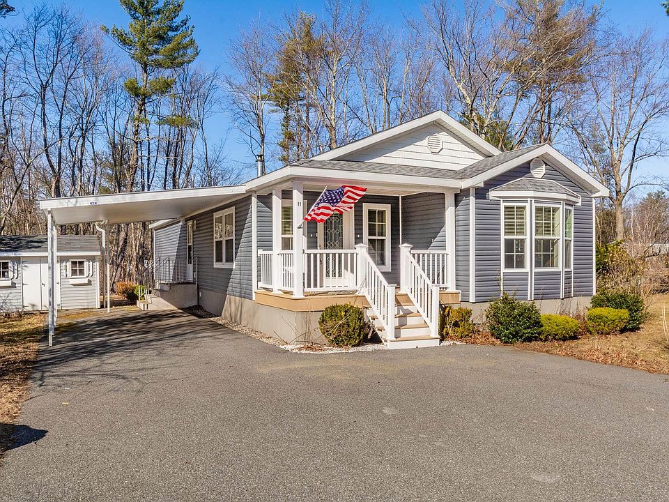 *OFFER DEADLINE SET FOR MONDAY MARCH 21ST AT 12:00PM* Welcome home to this HUGE 28'x60' manufactured home in the pristine Tisdale Retirement Community! Sick of the snow yet?-This home is complete with a carport with direct access to the home...keep your vehicle out of the elements and spend that time enjoying the little things in life. This home hosts 1534 sq.ft. with 2 bedrooms, 2 bathrooms and a bonus room that could double as an office/guest room. Single level living at it's finest! Enter through the sizable living room that connects to the kitchen and dining area. The kitchen has stainless steel appliances and cherry cabinets. There is a separate laundry area just down the hall and plenty of storage closet space throughout! The larger-than-most primary bedroom features a walk-in closet and en-suite bathroom. This bathroom has a double vanity, large linen closet, shower and even a dressing table. This home, while affordable, has it all and all you need to do is paint! Sit outside on the expansive covered farmers porch and take it all in...LIFE IS GOOD! The 12'x8' storage shed is just an added bonus...Just minutes to major routes and highways such as Rt. 38, Rt. 28 and I-93! For residents 55+! Park approval required.