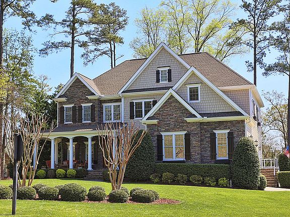 Amazing custom home! Fabulous finishes throughout, from the kitchen with slate floors to the double sided stacked stone fireplace. Gourmet kitchen with abundant custom cabinetry, expansive center island and Wolf 6 burner gas range. 1st floor study or guest bedroom. Spacious owner's suite. Terrace level with guest suite, spa bath, exercise room, and recreation room with wet bar. Great in-law suite! The Preserve at Jordan Lake has playgrounds, swim, tennis and basketball courts. You should call this HOME!