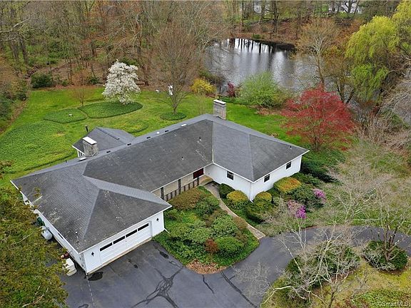 Location, location, location!!! This lovingly maintained sprawling Ranch sits 4+ flat acres of interior level park like grounds including a beautiful pond with dock. You'll love this year round wonderland graced with numerous flowering shrubs, trees, perennials and garden beds. A circular drive and walk way leads you through a double entry door into a large foyer. The well designed floor plan features all generous sized rooms with a central living and dining area plus a separate bedroom wing. Large equipped eat-in kitchen. The formal living room features an impressive stone fireplace with oversized bow window and the formal dining room boasts a floor to ceiling bow window allowing captivating views from both rooms. The family room with brick fireplace and slider leads to a fabulous heated sun room and with access to a large cement patio overlooking the picturesque yard and pond. Den/office/4th bedroom with slider to a second patio. Half bath with laundry. A separate wing features an enormous master bedroom suite with full bath, two additional bedrooms and full hall bath. Additional features include a 2 car attached garage, central air, multi zone heat, generator and city water. This magical one of a kind property is just minutes to Madison's quaint town center, beautiful beaches, train station and I-95. Act quickly or you will miss out on this rare opportunity.