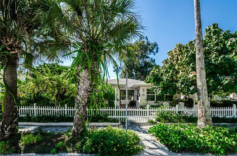 Charming 2 BR/1BA beach home with attached, 1BR/1BA guest cottage with separate entrance located in one of the most sought after locations in Florida...historic Pass A Grille beach! This home truly inspires relaxation as you walk through the white picket fence through the tropical beach landscaping and into this warm and inviting residence. Enter into the foyer and family room with mantled gas fireplace and built in shelving. The spacious kitchen is light and bright with white cabinets and granite counters with plenty of windows and door leading to the courtyard. This single story home also offers a large dining room and separate den/office. An attached guest house is perfect for family and friends who will want to stay with you at your beach getaway or for winter rentals who will enjoy the 1/2 block to the beach or 1/2 block to the intracoastal and walking distance to shops or restaurants location! Whether enjoying your evening cocktail relaxing in the Adirondack chairs in the front yard appreciating the balmy Gulf of Mexico breezes or enjoying dinners in the adorable, private courtyard with lush landscape, you will be memorized by the irresistible charm and location this home offers!