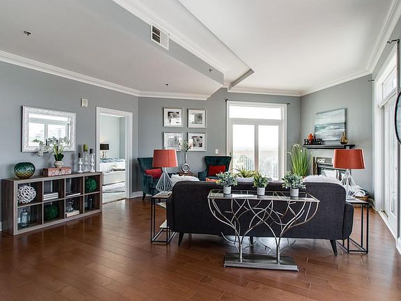 Huge patio and additional balcony. Bedrooms are on opposite sides of unit. Pristine condition with brand new paint. Nice ceiling heights and finishes. This condo really feels like a house. Refrigerator and washer and dryer remain. Two parking spaces.