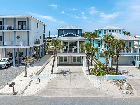 Beautiful 5 BR, 3 BA Mediterranean style beachside home in the heart of Mexico Beach. This home was recently remodeled and is professionally designed with eloquent and tasteful furnishings. This home is located in 'X' flood zone and is just a few steps to the sugar white sands of Mexico Beach! It has 3,108 total sq. ft. with 2,542 sq. ft. heated and cooled. The in-ground pool is surrounded with a privacy fence and lush landscaping and a remarkable outdoor shower.. The first floor encompasses 3 bedrooms(including a bunk room that sleeps eight comfortably), bonus entertainment room, kitchenette, wet bar and full bath. The 2nd floor touts a custom kitchen, Master Bedroom #1 and a balcony with beautiful Gulf views. The 3rd flood is home to Master Bedroom #2 with it's own HVAC unit. Other amenities include a Rennai instant gas water heater, 3 HVAC units, impact windows and doors, LVP flooring, stainless appliances and solid surface counter tops throughout and foam insulation. The Mexico Beach public boat launch is less than a mile away and provides for instant access to the Gulf of America! This home would make a great rental and should easily generate $125k-$130k in annual revenue. Don't miss this great investment opportunity! Call today for a personal showing and tour of the area!