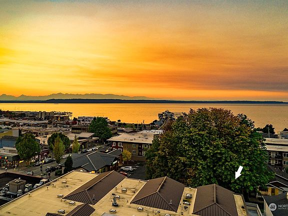 Located in the “Heart of downtown Edmonds”! Sprawling top floor, corner penthouse showcases Puget Sound and Olympic Mt. views. Rarely available this spacious floor plan,2,006 ASF, lives like a house offering sophisticated architecture, soft corners, vaulted ceilings, 2 gas fireplaces, skylights and expansive wrap around deck. Light filled view living room w/cozy gas fireplace, formal dining, as well as private office w/French doors. Elegant primary ensuite w/walk-in closet and fireplace, Second bedroom, full bath, A/C, large laundry, utility storage room, gourmet kitchen, granite counters, walk-in pantry, and counter dining. Enjoy strolling to local eateries, theater, shopping, and Edmonds waterfront.2 gated prking and extra strg included.