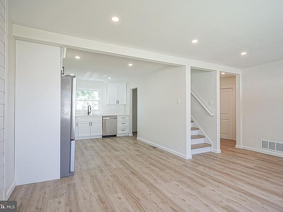 This charming bungalow is fully refreshed and ready to impress. Featuring four bedrooms—two on the main level and two upstairs—and two completely renovated bathrooms, this home offers both comfort and functionality across every floor. From the moment you arrive, the curb appeal stands out thanks to new landscaping, a new roof, and new siding. Step inside to discover fresh paint throughout, new vinyl plank flooring on the main level, and plush carpeting upstairs. Natural light flows into the open-concept living and kitchen area, where the modern kitchen shines with quartz countertops, white cabinetry, a tiled backsplash, and stainless steel appliances. Recessed lighting in the kitchen and family room adds warmth and style, while all-new doors and light fixtures contribute to the updated feel. The primary bedroom and additional bedrooms provide flexibility—perfect for families, guests, or a home office setup. The unfinished basement offers excellent potential for a customized recreation space, home gym, or additional storage. Enjoy time outdoors in the nicely sized backyard, ideal for everything from weekend barbecues to gardening. New HVAC ensures your comfort year-round.
