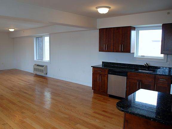 Enjoy the priceless feature- AMAZING MANHATTAN VIEWS. Apartment features private terrace, Bright and spacious living room, 2 King size bedrooms with great closet space, Open kitchen with SS appliances, chestnut cabinets & granite counter tops, 2 full tiled bathrooms. Hardwood floors, high ceilings, washer and dryer. Building features contemporary lobby, 2 level garage, additional storage, on site super. Pets are welcome. Conveniently located near shopping & NYC transportation.