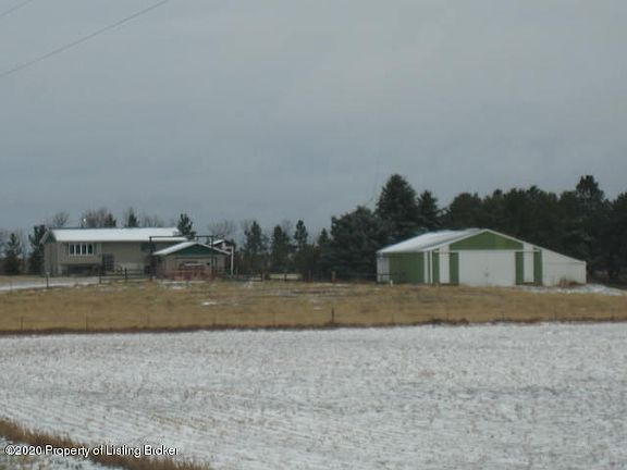 Very nice 6.79 acre property locate 3 miles East and 1 mile North of Hettinger on St NE. The property is located at the end of a good gravel road. Split foyer with three bedroom two bath home. 1344 Square Feet per level. Two car attached garage. There is a 1944 SF Pole Type Building that is 36' x 54'. It has a 18' x 27' lean on the east side of the building. 648 SF on the north side of the building is a shop. That area has a concrete floor, insulated, and 220 volt Heat. Property also has small shed and a playhouse/treehouse. There is landscaping including a small water pond. The property is protected by a wind break of mature pine trees. There are two wells on the property. There is a fenced area around the shed.