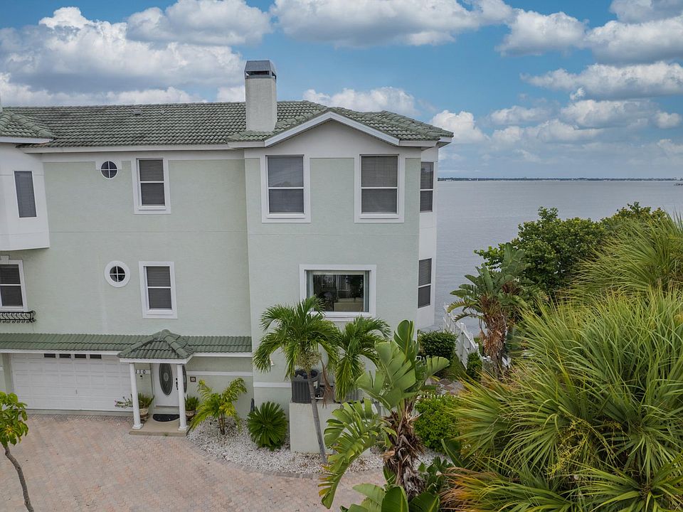 An exquisite 4 bedroom executive villa with each bedroom having an en-suite bath. As you walk through the entryway you'll realize you are in a truly unique place. The first level features a two car garage, a foyer that opens to a very private covered pool area with an expansive views of Boca Ciega Bay and the Intracoastal waterway. Second level features; One bedroom, with a full size bath, kitchen, living/ dining area which has many architectural features including tray ceilings, crown moulding, and a gas/wood burning fireplace. Third Level features; master bedroom/bath and other two bedrooms with two full size baths. Private and secluded with open water views and easily accessible boat dock. Lawn Maintenance, Pool Service and Pest Control
