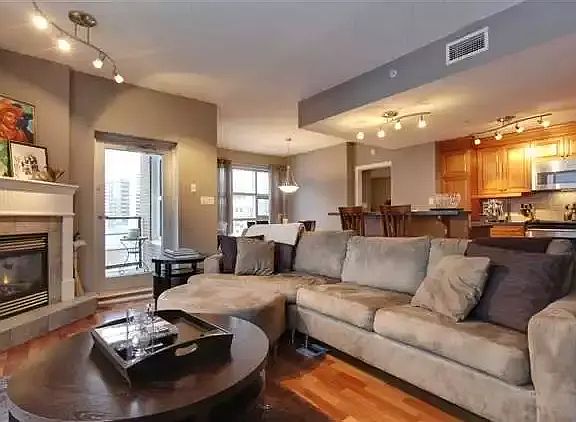 This beautifully designed stone building is located in the heart of Eau Claire. Walking distance to fabulous restaurants, YMCA, Prince's Island Park, river pathways & downtown. This lovely 2 bedroom, 2 bathroom home with floor to ceiling windows & 9'ceilings overlooks Calgary's fabulous downtown skyline. This gorgeous, 'Pristine' condo features several upgrades including cherry hardwood floors, granite countertops, solid maple cabinets, stainless steel appliances, corner gas fireplace, custom designer window coverings & gas outlet for your summer barbeques
