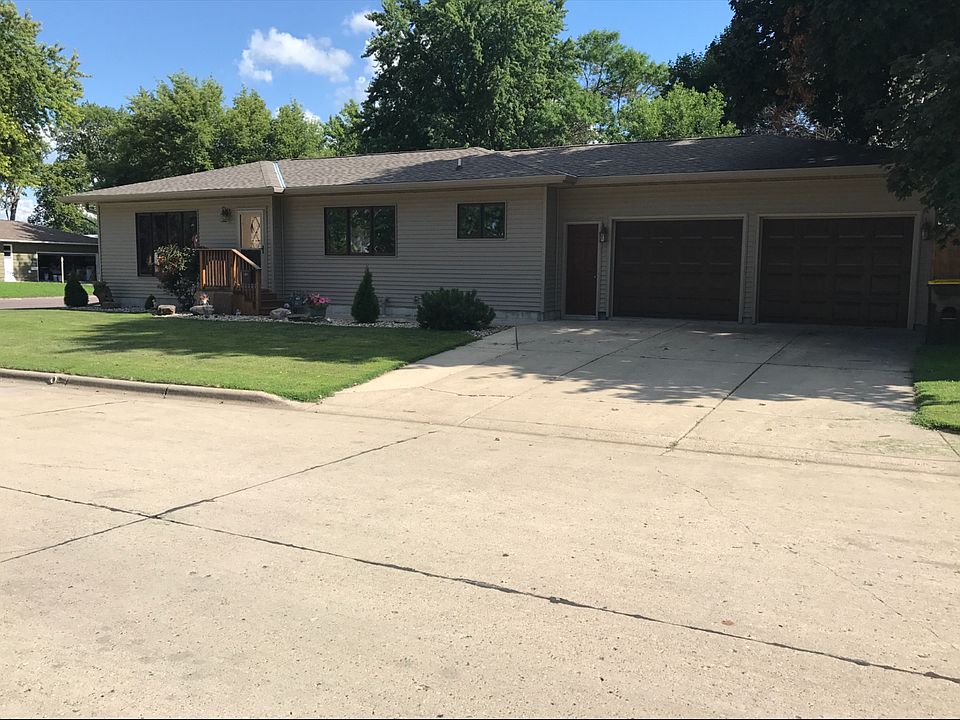 The home sits on a corner lot a block from the pool, golf course and park. Only a few blocks from the school and downtown. School bus stop in front of the house. There are two bedrooms, laundry room, full bath, living room, kitchen and dining room on the main level. Open kitchen, dining and living room. Kitchen has pantry, breakfast bar, oak cabinets, double oven and all stainless steel appliances. The lower level has two more bedrooms, family room, 3/4 bath and storage. The insulated and heated double garage has cable, cabinets, barn wood feature wall and patio door to the partially fenced yard and patio area. There also is a 10x10 shed with electricity. The exterior gutters, roof and siding were replaced in 2015.