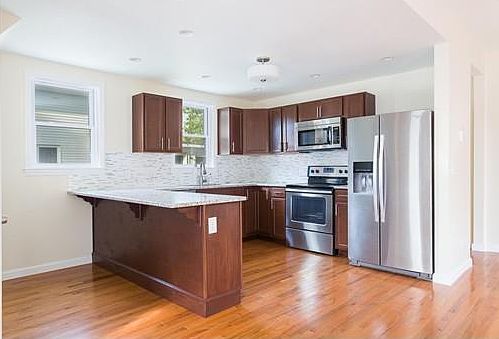 *Showings start at the open house this Saturday May 20th from 11am to 1pm* Beautiful completely renovated home located in a quiet neighborhood close to shopping, highway access, commuter rail and restaurants! The main level offers a porch for relaxing, large kitchen, dining and living area with an open floor plan, laundry room, 1st floor bedroom, full bath and mud room. Upper level consists of 2 nice size bedrooms, a full bath with double sinks and an open hall landing great for office space or reading area. Hardwood flooring, gas heat, basement has plenty of storage space, large fenced in yard and the home is move in ready!