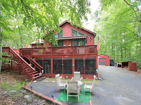 This 4 bedroom, 3 bath home with great privacy features a gorgeous sunroom, family room, 2 sheds, screened porch, paved driveway, family fire pit and so much more. Enjoy all of Masthope's amenities including skiing, pool, beach, motorboating lake, fitness center, horseback riding, Delaware River and more!