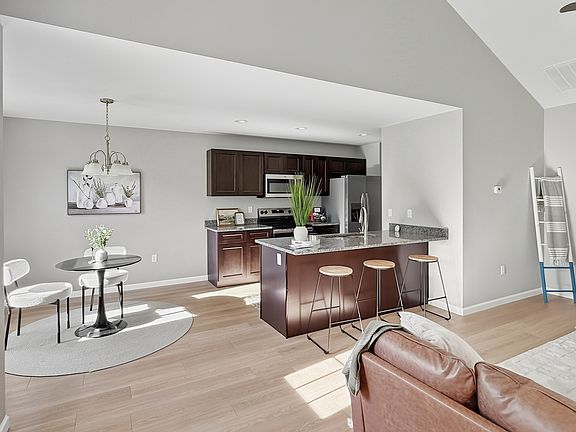 This home has a spacious open concept living area with vaulted ceilings in the living room and master bedroom. The luxury vinyl plank flooring is durable and elegant, and the granite countertops shine in the kitchen and bathrooms. Step through the foyer into a great room perfect for entertaining, with an open floor plan that connects the kitchen and breakfast area. The split design keeps the master suite private, with a vaulted ceiling, a big walk-in closet, and an en-suite bathroom with a step-in shower and granite vanity. The home also has a two-car garage, a sodded yard, and a large private backyard great for your pets, family, and friends, as well as gardens. Don't miss out on this chance to make this home yours. Contact us for more info and to schedule a tour. Builder provides 2-10 Warranty. Sq. Ft. source is an estimate from the builder GC.