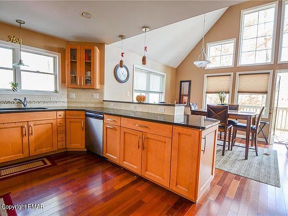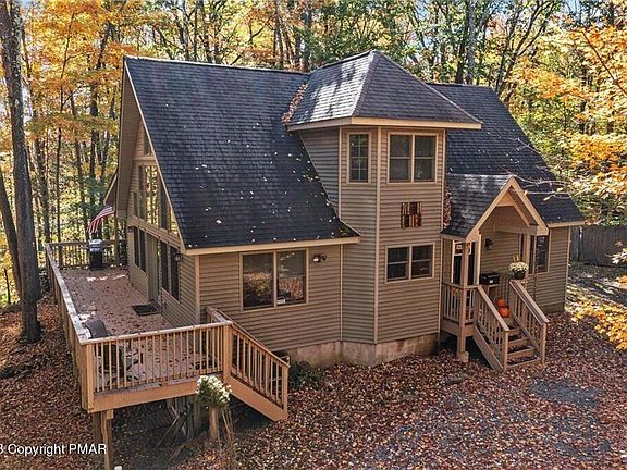 Property Active UC- Buyer financing fell thru- accepting backup offers! Located outside of the gate- drive straight to the house with your GPS. Schedule your showing today! Tranquility + style... Custom Chalet for the investor, vacationer or primary resident. Walking path to lake/beach. Built 2010, 3/4 bedroom/3 bath with two primary suites. Brazilian cherry floors, Steel, granite kitchen, high efficiency fireplace, wrap around deck overlooking awesome rock ridge views from Pella windows. Loft offers cozy tv/sitting area and 2nd private en suite with Custom closets + balcony views. Lower level, 700 sq ft basement walkout with 3 windows. Plus 4th bathroom! Home upgraded to community sewer and underground electric. Home is at the end of a cul de sac built on over one acre of private property surrounded by preserved green land on all sides. Along Pinchot State Forest. Unique, tranquil lifestyle. Proven short term rental history. Mature tall timber surround this chalet.